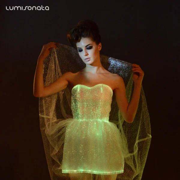 Optic Fiber Luminous Light up Dress Party Ballroom LED Gown Women Nightclub Singer Stage Performance Wear 2026