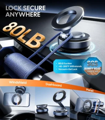 Magnetic Car Phone Holder for iPhone 17 Pro Max 16 15 14 13 12 Air Plus, 360° Adjustable, Strong 80LBS Suction & 3000gf Magnetic