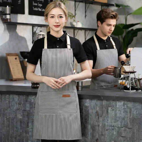 High-end Apron Household Breathable Apron Restaurant Bakery Kitchen Fashion Apron Catering Work Double Pocket Striped Apron