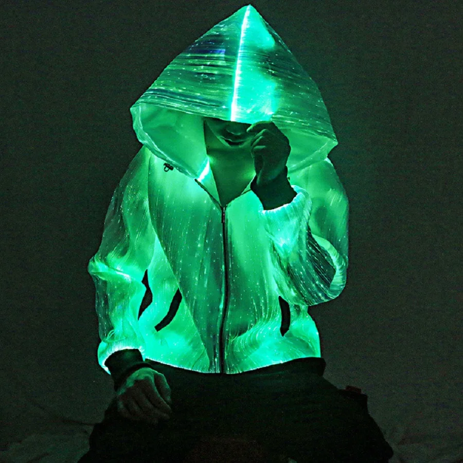 Lumisonata Men DJ Dance Show Music Festival Nightclub Street Windbreaker Zip UP Hoodie Zipper Led Light up 7 Colors