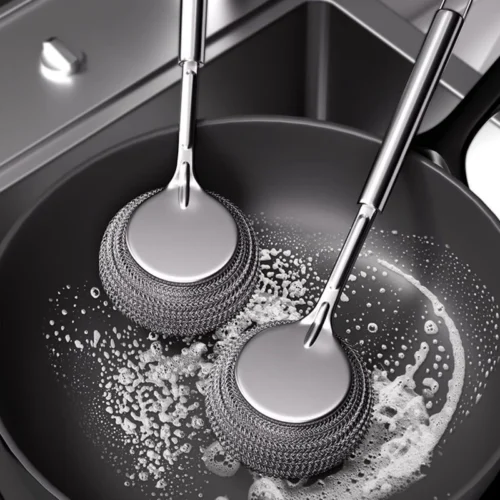 Stainless Steel Pot Brush Kitchen Special Pot Washing Steel Wool Ball Brush Long Handle Dish Cleaning Brush Pot Brush Magic Tool
