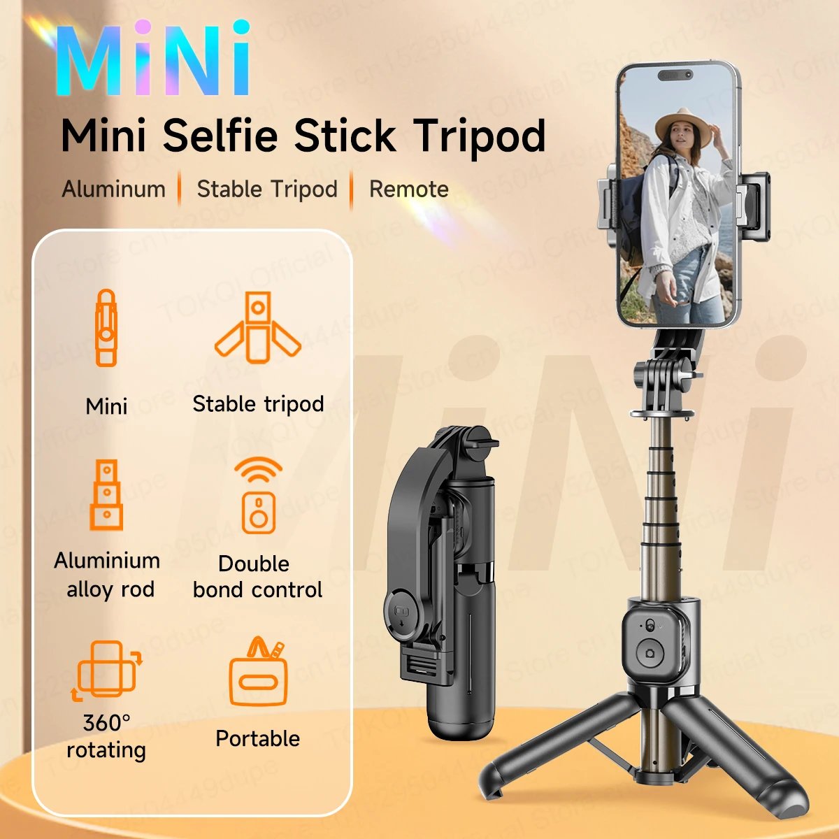 Mini Selfie Stick Portable Tripod for Smartphones Shooting Vlog Video Detachable Phone Mount, Optional Fill Light