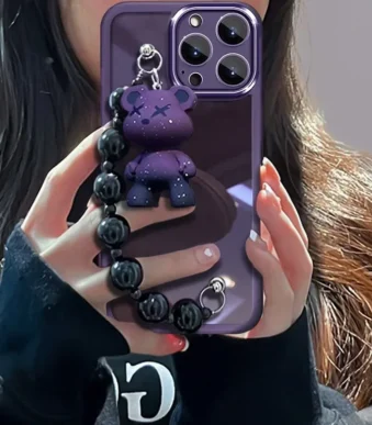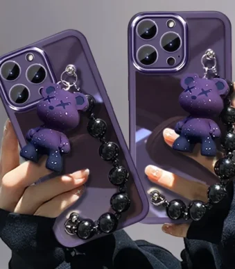 Electroplating TPU Soft Protective Case Transparent Teddy Bear Bracelet for IPhone 16 Promax Suitable for Apple 14/15 Phone Case