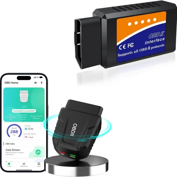 OBD2 Scanner Bluetooth 5.4, Wireless OBD II Code Reader for iPhone, Android, Windows – Check Engine Light Reset & Performance Te