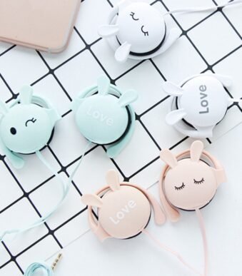 QearFun Cartoon Rabbit Ear Hook Wired Earphone Sport Running Stereo Headphones Children Girl Headset For Mobile Phone