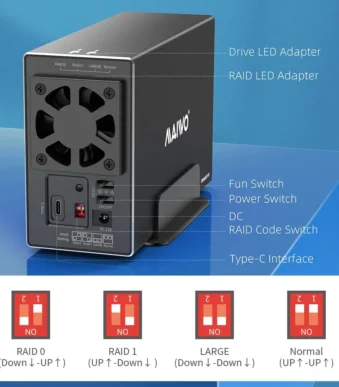 MAIWO 3.5 inch SATA RAID Storage Enclosure Dual Bay Hard Drive Docking Station to USB3.1 Type-C 10Gbps Support RAID 0 /1 Mode