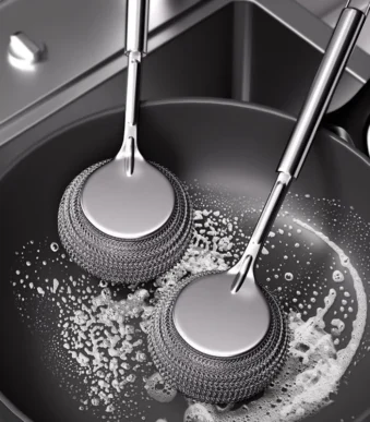 Stainless Steel Pot Brush Kitchen Special Pot Washing Steel Wool Ball Brush Long Handle Dish Cleaning Brush Pot Brush Magic Tool
