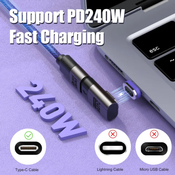 240W Magnetic Right Angle USB C Male Female Adapter 90 180 Degree PD3.0 Fast Charging Type C Adapter Extender for Iphone Adapter