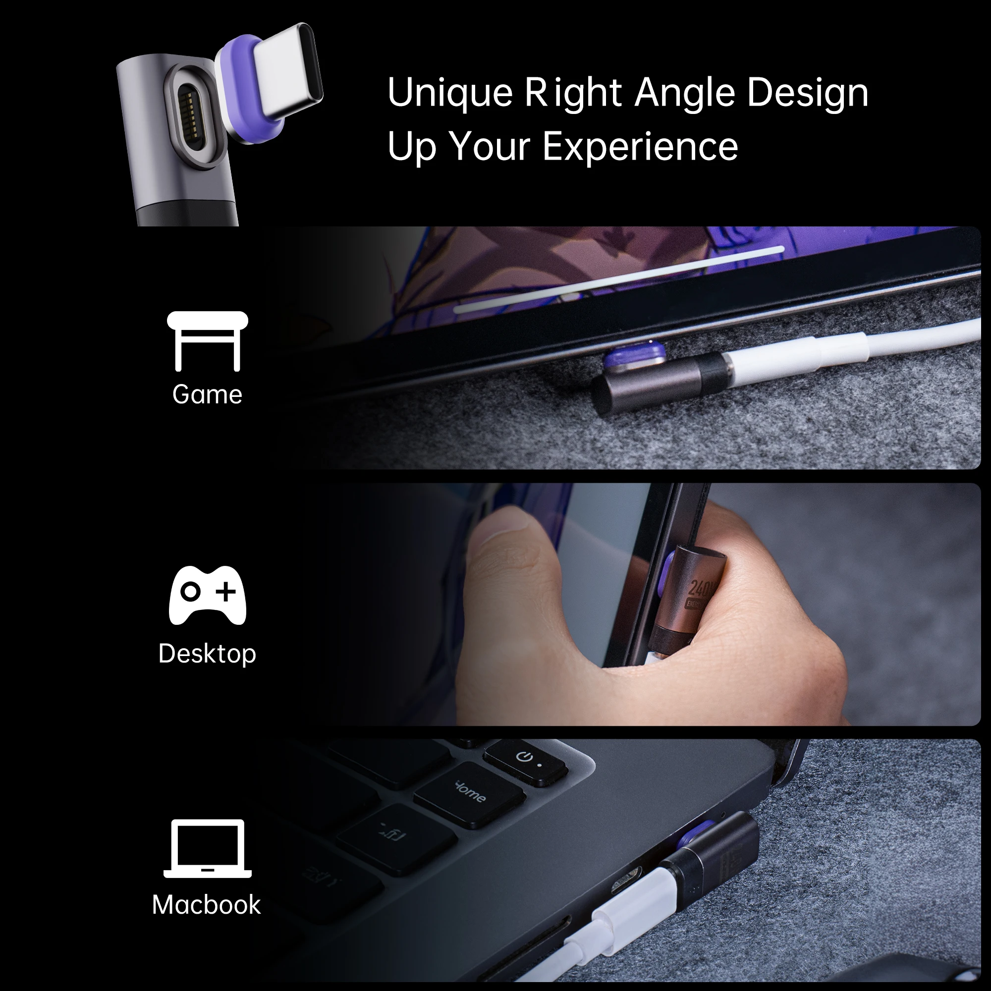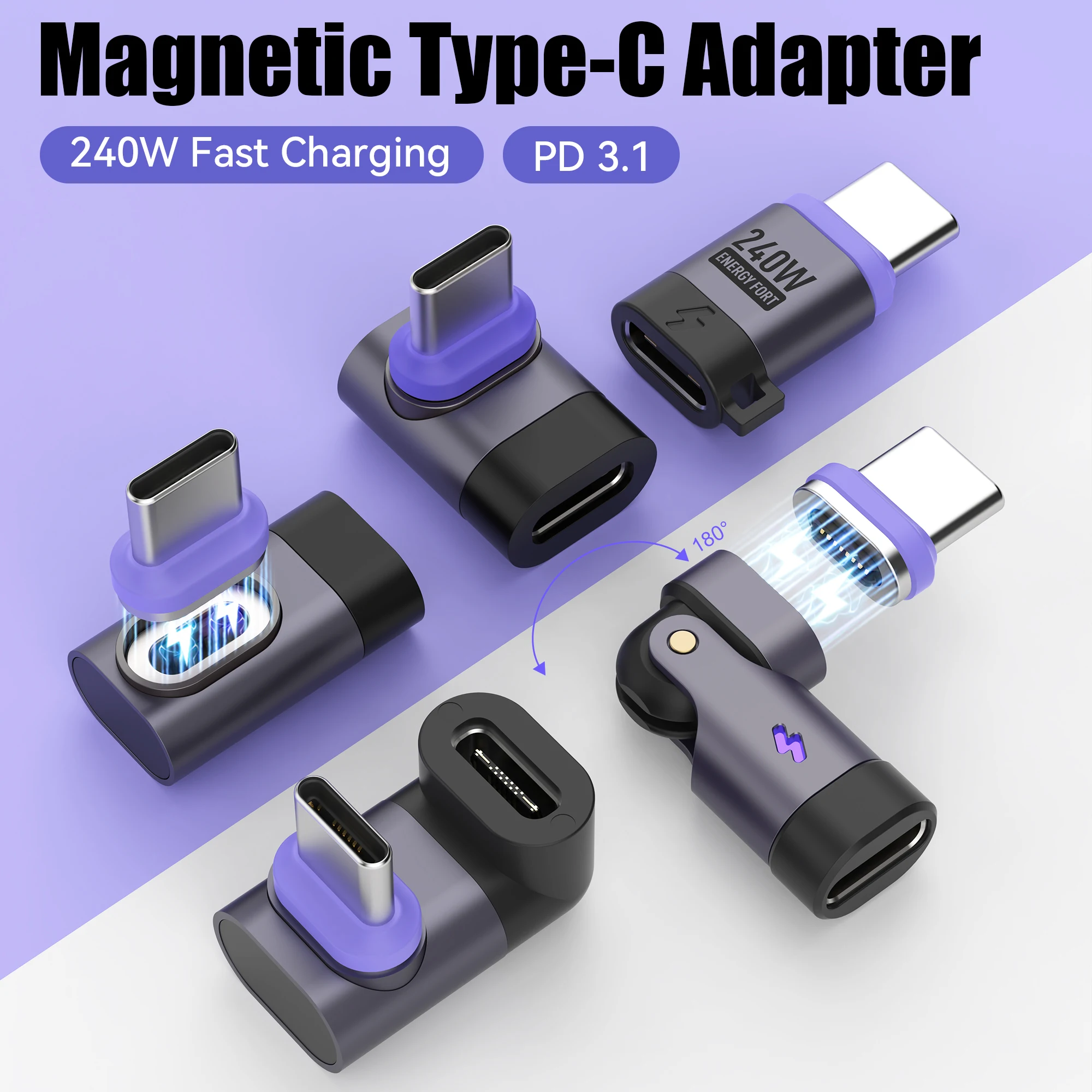 240W Magnetic Right Angle USB C Male Female Adapter 90 180 Degree PD3.0 Fast Charging Type C Adapter Extender for Iphone Adapter