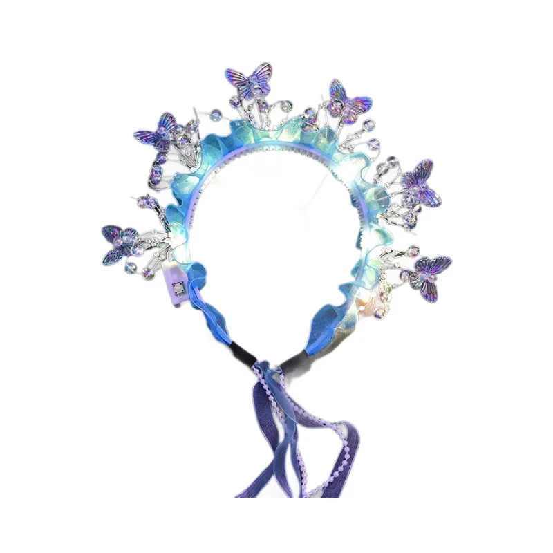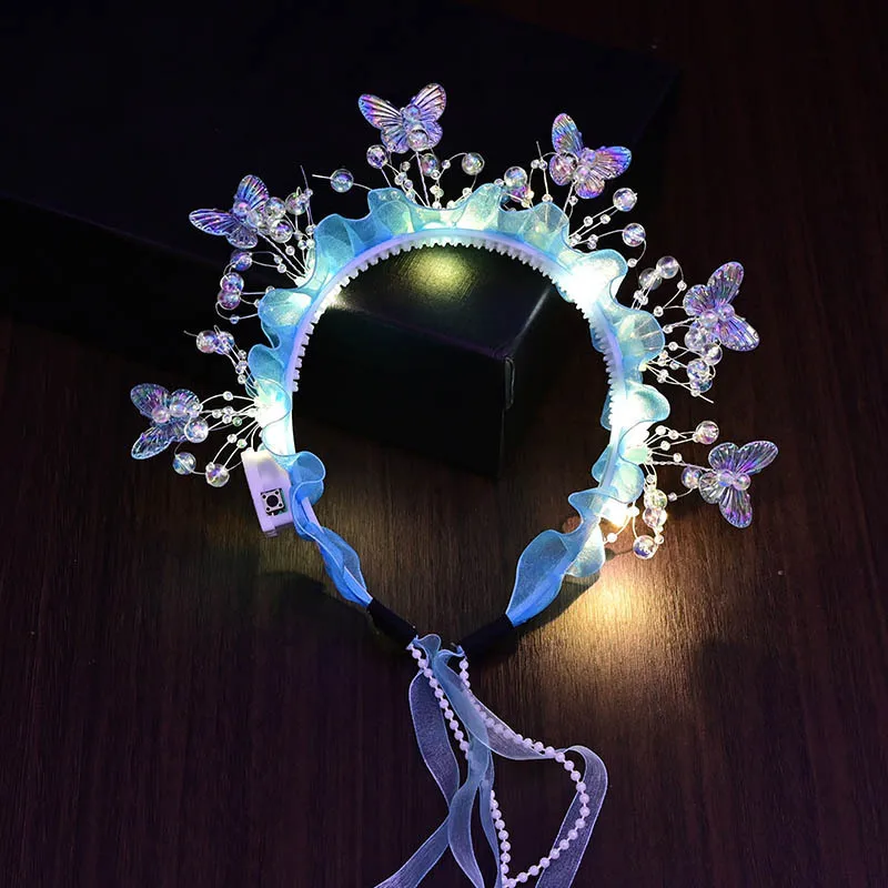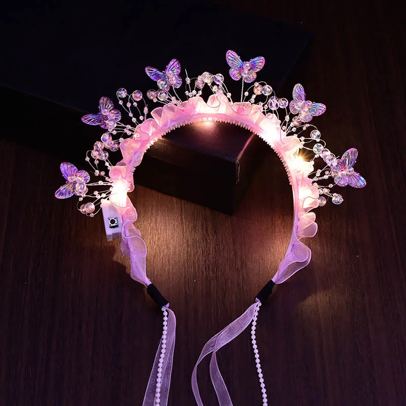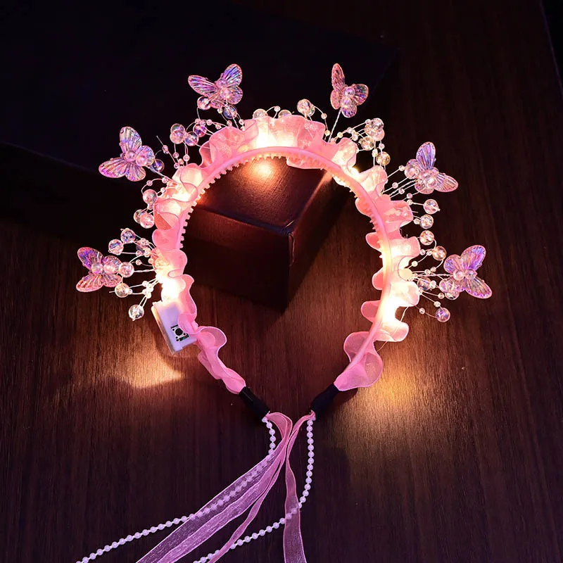Adult Kids LED Glow Party Sequin Cat Bunny Crown Flower Headband Halo Light Up Wreath Hairband Birthday Gift Wedding