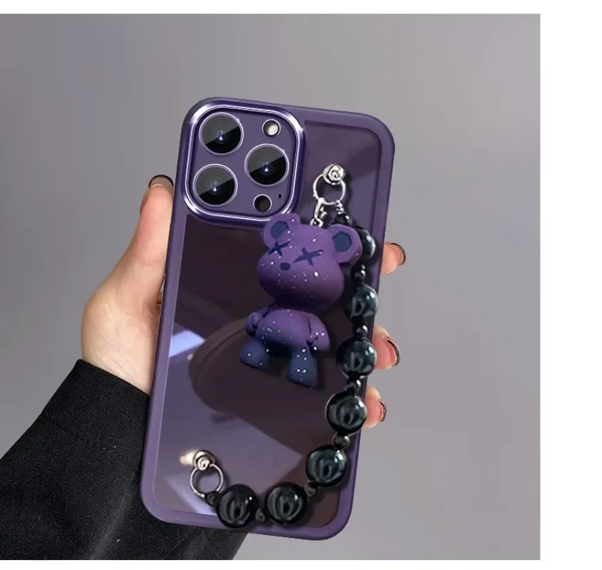 Electroplating TPU Soft Protective Case Transparent Teddy Bear Bracelet for IPhone 16 Promax Suitable for Apple 14/15 Phone Case