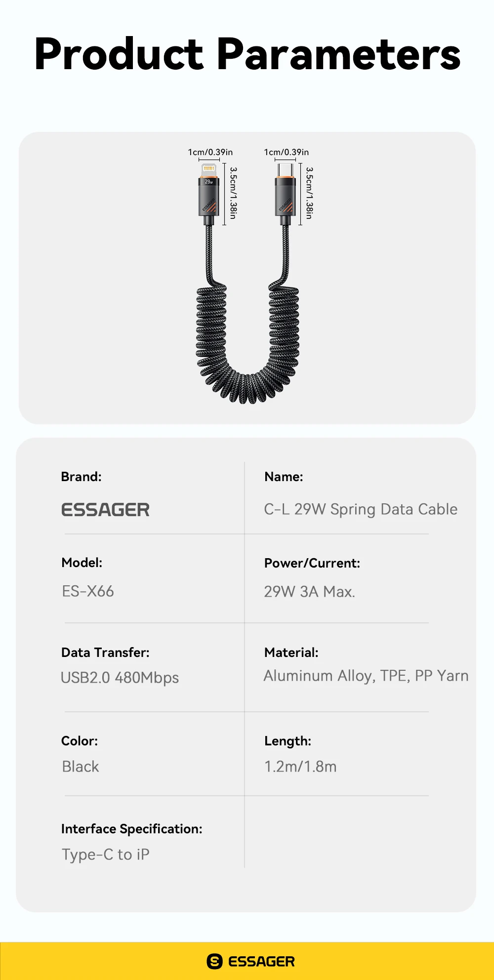 Essager Car Spring USB C To Lightning Cable PD 29W Fast Charging For Apple iPhone14 13 12 11Pro Max Charger 1.8m Carplay Braided