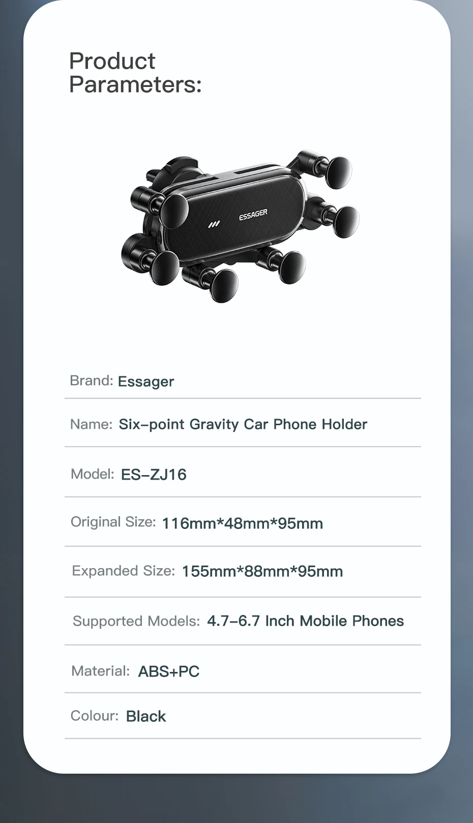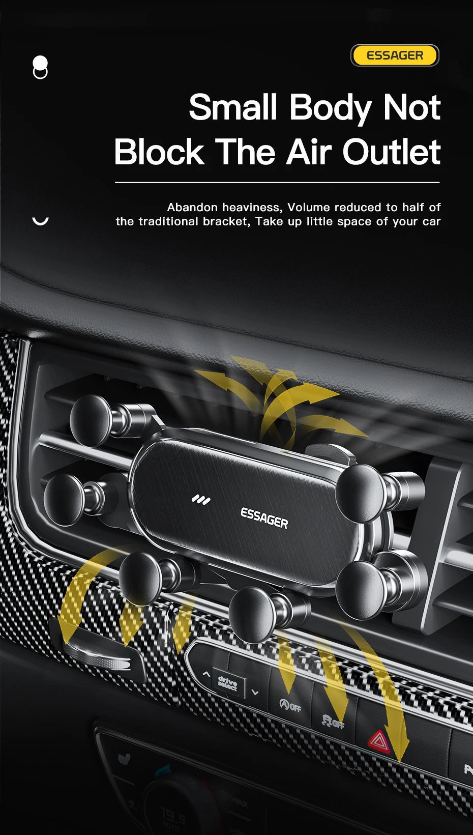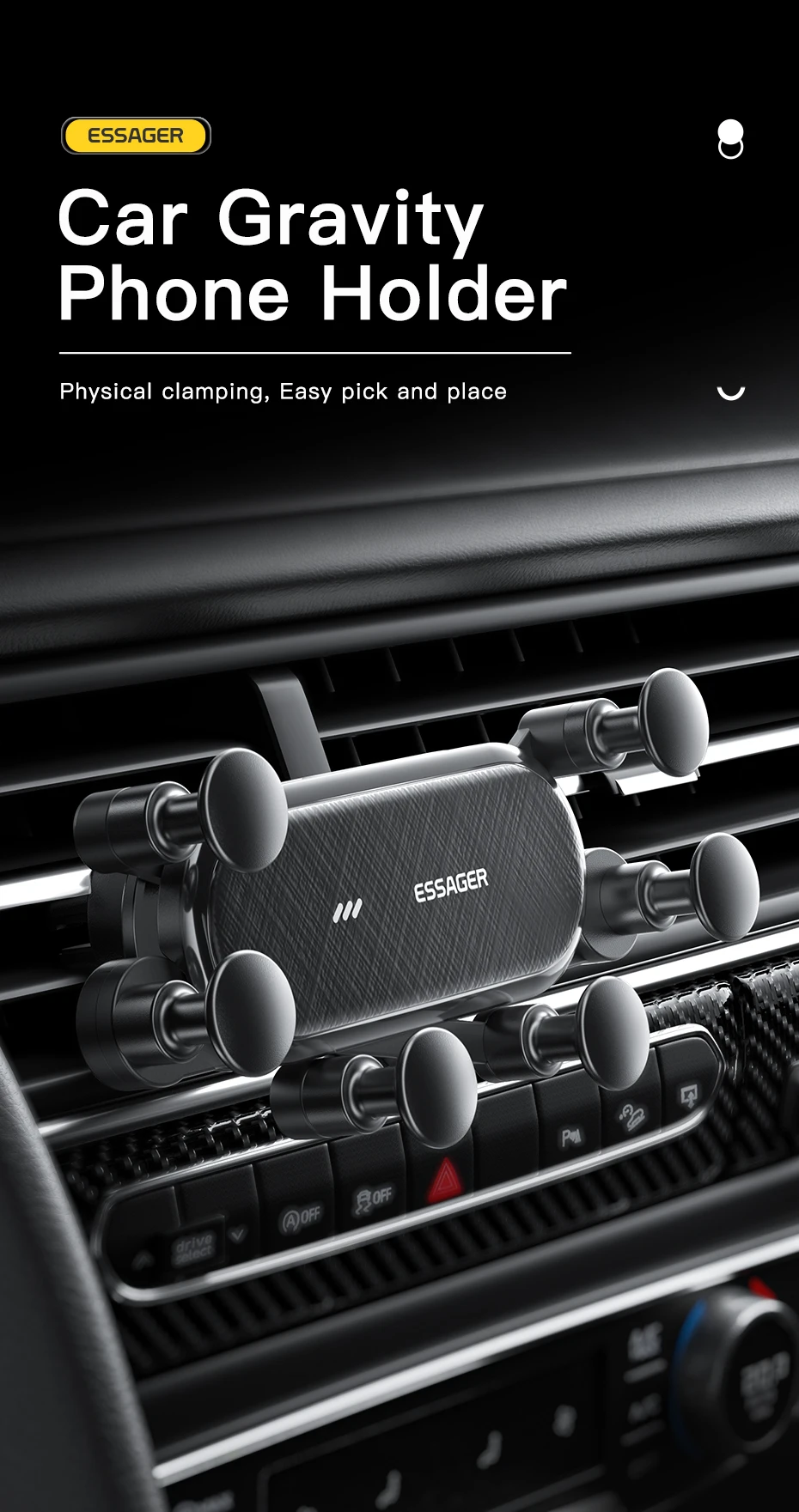 Essager Six Points Gravity Car Phone Holder Air Vent Clip GPS Mount Stand For iPhone 15 Samsung Xiaomi Smartphone Holder Support