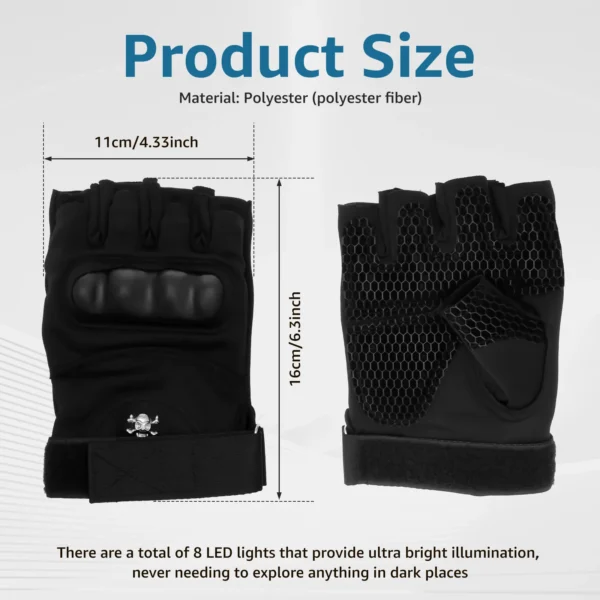 1 Pair LED Flashlight Gloves Hands Free Half Finger Lighted Gloves Breathable with 8 LEDs for Running Camping Hiking Repairing