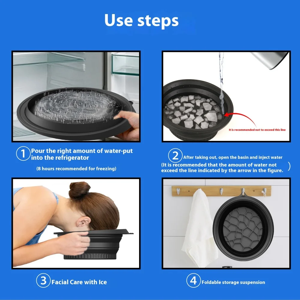 Silicone Portable Folding Ice Facials Basin Facials Skin Cares Tool Collapsible Face Ice Wash Bowl Reusable Cold Plunge Basin for Skin Tightening Acne Relief Anti-Inflammation