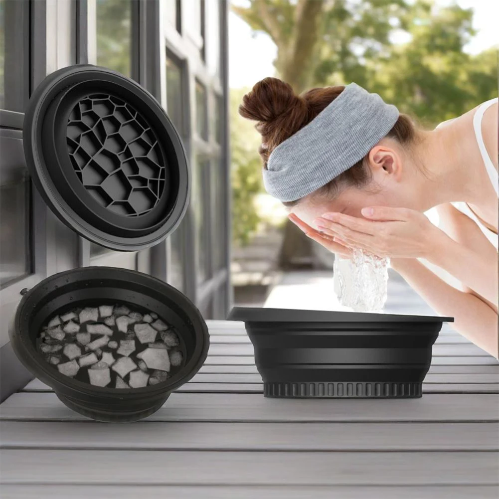 Folding Basin Silicone Facial Ice Bath Bowl for Ice with Built-in Ice Tray Efficient Washing Basin for Girls Cold Plunge Therapy