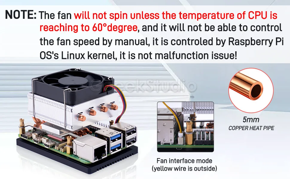 NOTE: The Fan is controlled by Raspberry Pi OS itself, and it will turn on once the CPU temperature is reached to 60 degree!