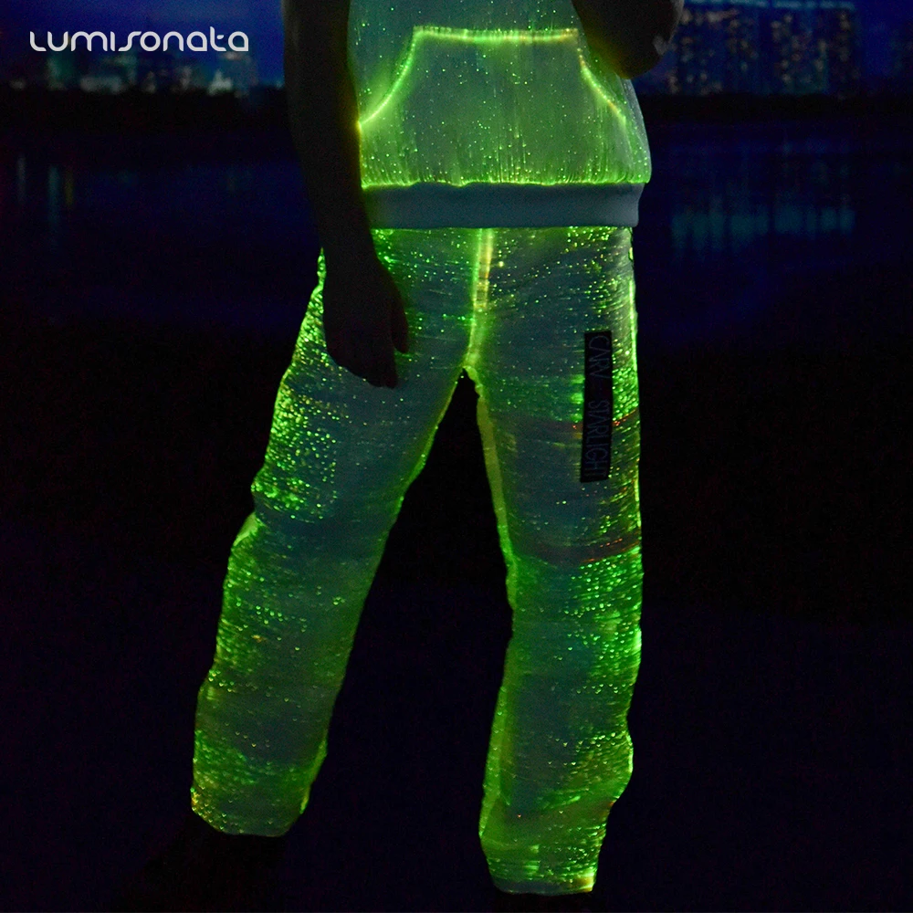 LUMISONATA Cool Fashion Led Light Up Pants Luminous Fiber Optic Dance Club Trousers For Stage Performance