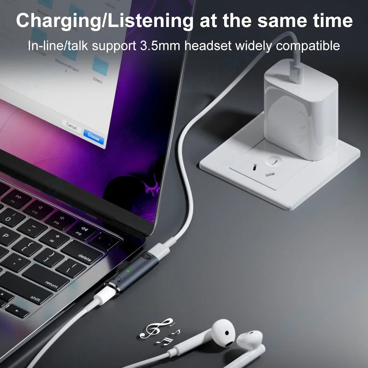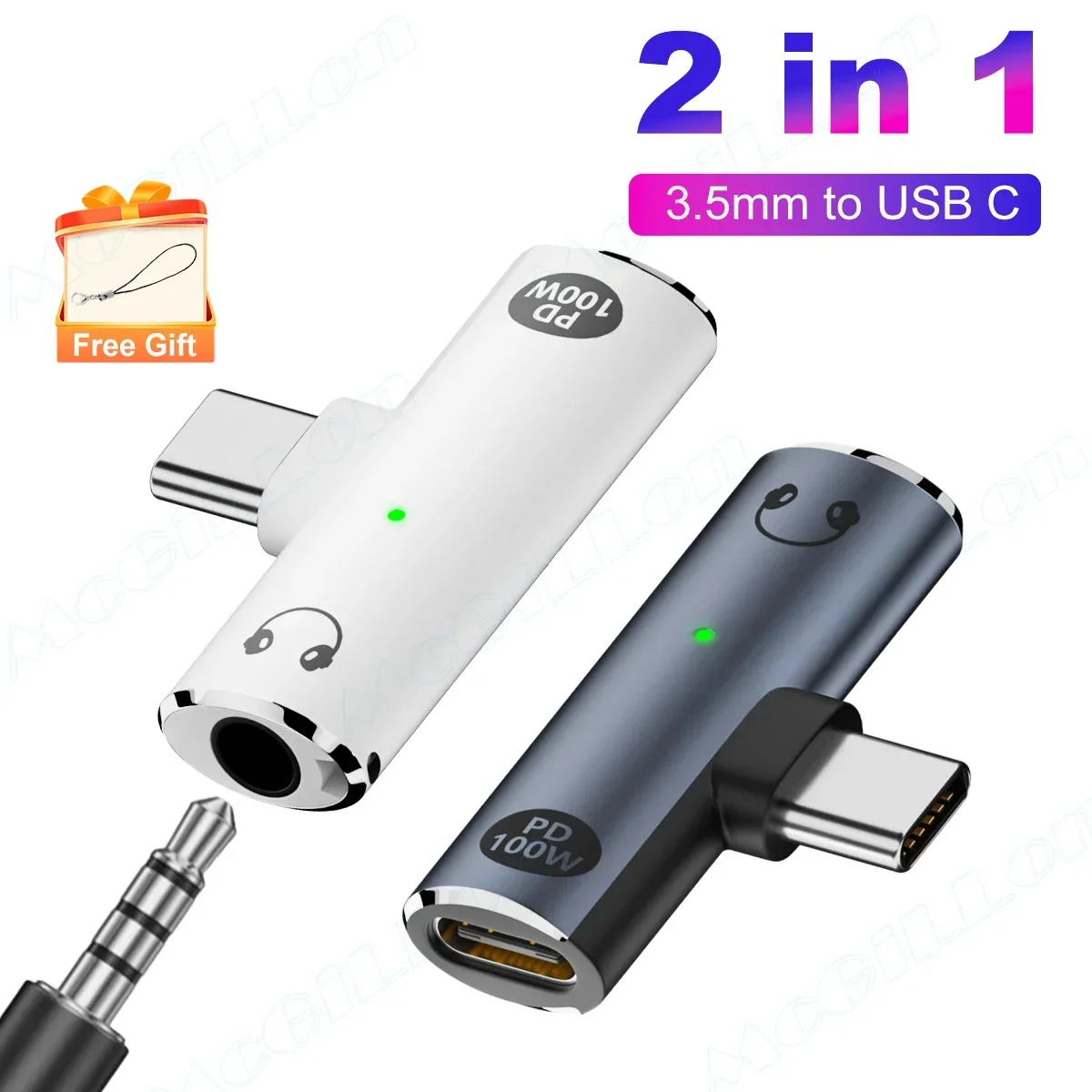 PD100W Type C to 3.5mm Audio Adapter 2 in 1 USB C to Headphone Jack Adapter USB C Charge Adapter Headphone Adapter for iPhone 16