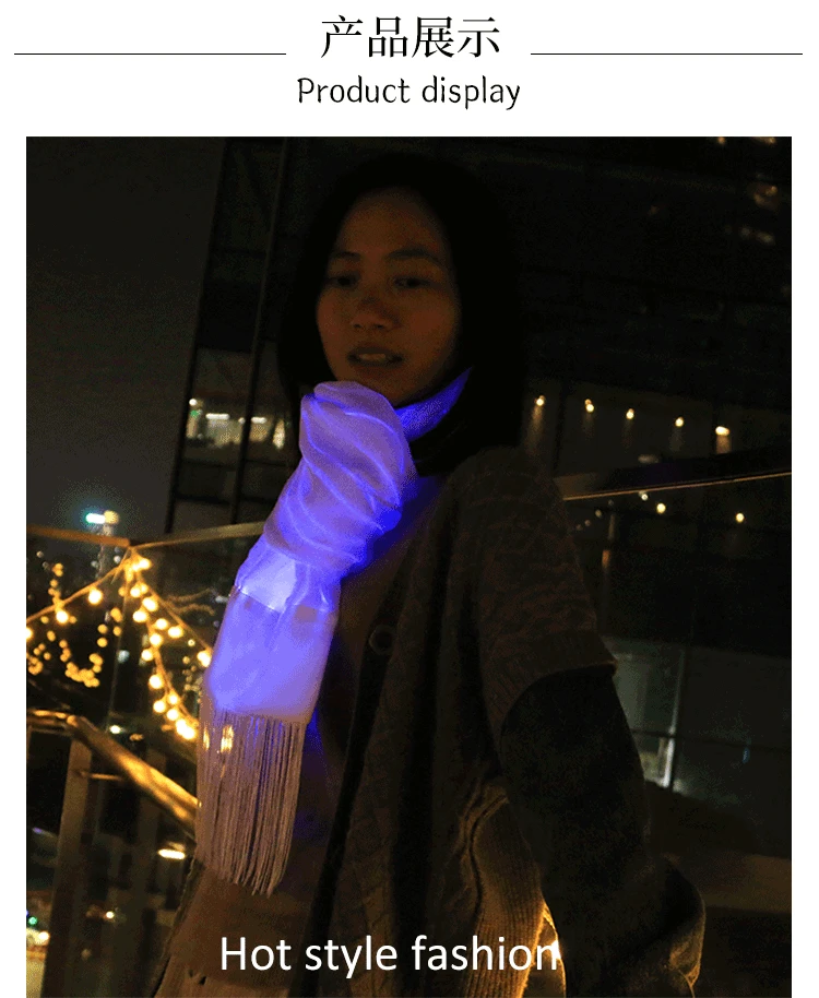 White Optic Fiber Light up Scarf Adult Women Nightclub Party Rave Accessories LED Luminous Atmosphere Props Fancy Stage Wear New